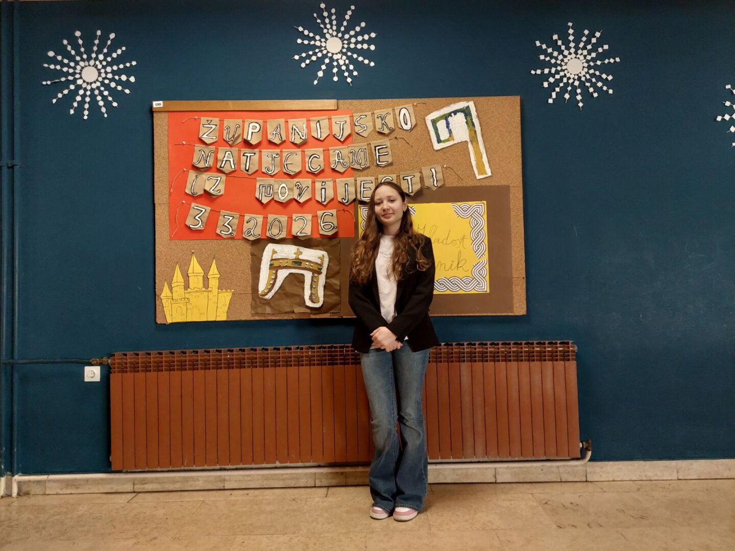 Škola je izuzetno ponosna na našu učenicu Katju Horvatin koja je na Županijskom natjecanju iz Povijesti osvojila odlično peto mjesto među 14 natjecatelja! Ovaj veliki uspjeh rezultat je njezine predanosti povijesti i marljivog rada uz stručnu podršku mentorice, učiteljice povijesti Kristine Lukec.