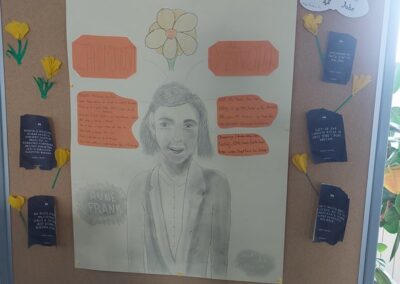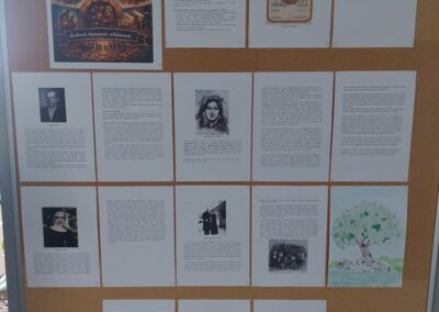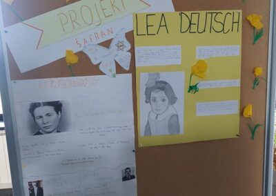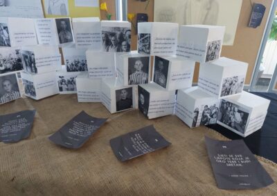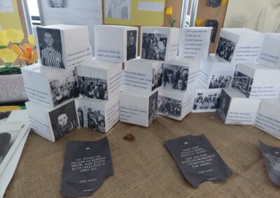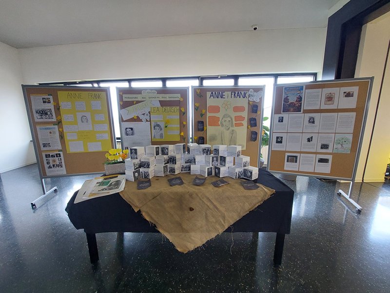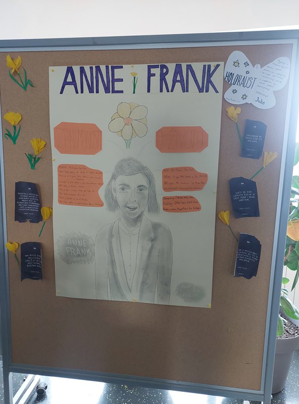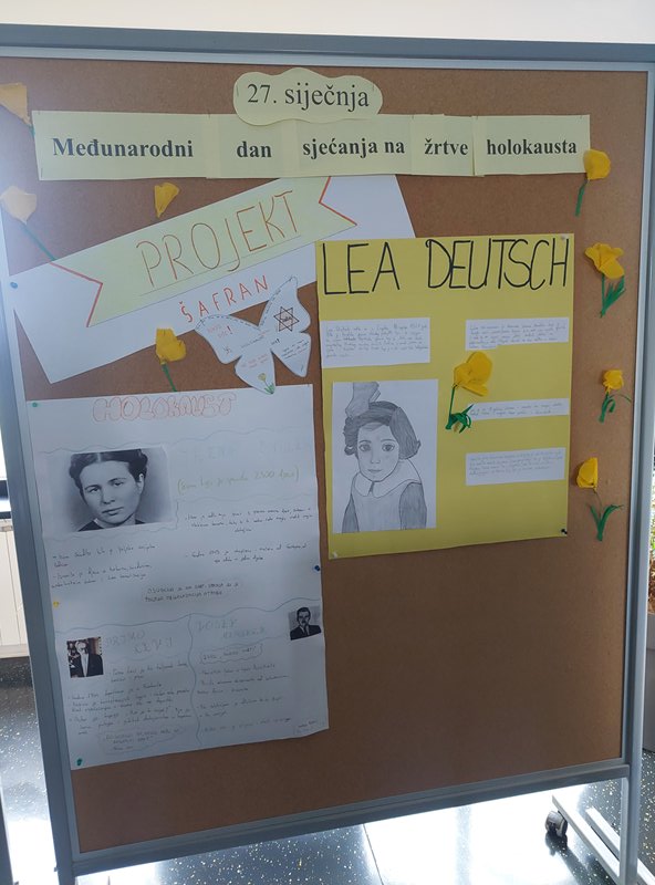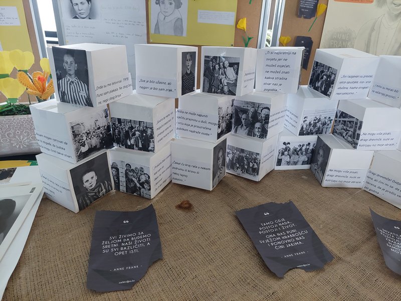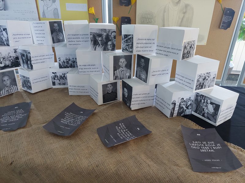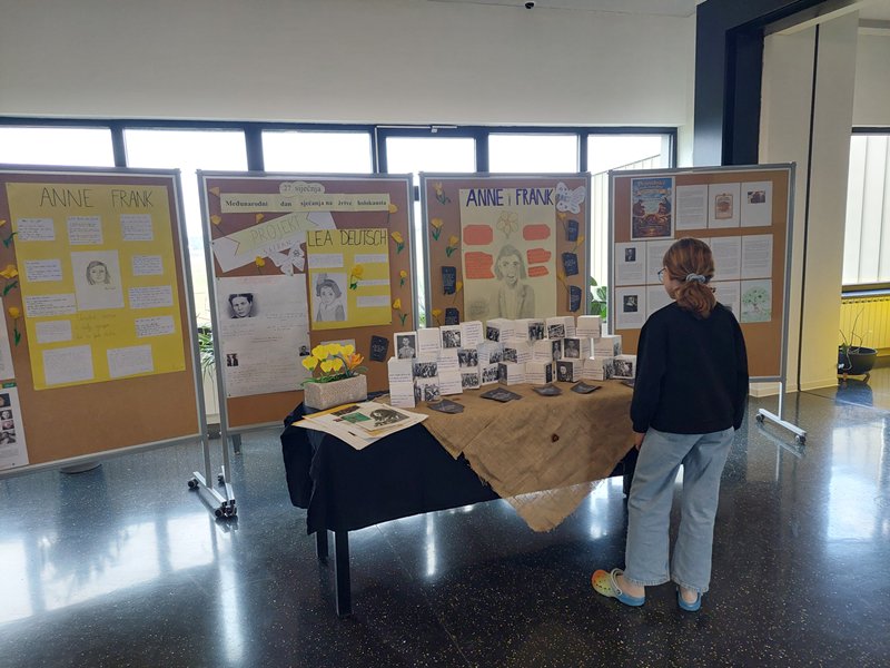 U holu naše škole postavljena je izložba posvećenu ovom danu, gdje se u okviru projekta “Šafran” može pogledati plakate o Anne Frank i Lei Deutsch koje su izradili naši učenici uz informacije o njihovim životima te instalaciju od kocki s fotografijama, mislima i citatima svjedoka strahota holokausta.