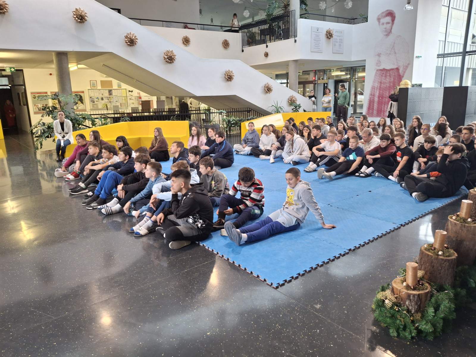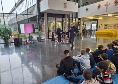 Nakon predavanja o ovisnostima, učenicima se kratko obratila i djelatnica Policijske postaje Kutina Marija Jozić, koja je učenike kratko upozorila na zabranu korištenja pirotehnike svima koji su mlađi od 14 godina te ih uputila da i oni stariji pirotehnička sredstva smiju koristiti samo u razdoblju od 27. prosinca do 31. prosinca.