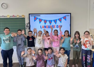 Dan engleskog jezika obilježava se na datum rođenja i smrti najslavnijeg engleskog pisca Williama Shakespearea. Tim su povodom učenici B1 izvannastavne aktivnosti Jezični klub, uz vodstvo učiteljice Tee Dolenčić Dundović, sudjelovali u raznovrsnim i zanimljivim aktivnostima. Gledali su prigodne videozapise, sudjelovali u edukativnim igrama te rješavali kreativne pisane zadatke na koje su reagirali s velikim zanimanjem, znatiželjom i oduševljenjem. Posebno su uživali u timskom radu i otkrivanju neobičnih činjenica o jeziku. Svoj su doprinos obilježavanju Dana engleskog jezika pokazali i uređenjem panoa u holu škole.