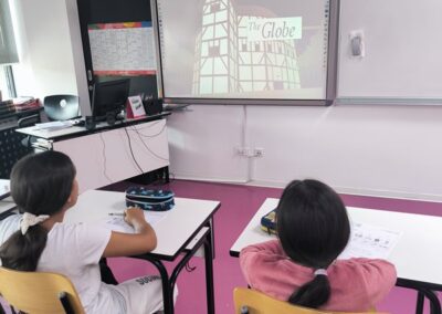 Ista je učiteljica s učenicima osmih razreda obradila lekciju “I Met the Bard”, u kojoj pratimo dječaka koji slučajno upoznaje Shakespearea. Učenici su s interesom pratili priču i raspravljali o njegovu utjecaju na jezik. Shakespeare je u engleski jezik uveo mnoge riječi i izraze koje danas svakodnevno koristimo, poput lonely, hurry, majestic, gossip te izraze break the ice, wild-goose chase i in a pickle. Bez njega engleski jezik ne bi bio isti, a činjenica da je treći najprevođeniji autor na svijetu dodatno potvrđuje njegovu bezvremensku važnost.