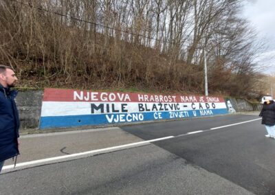U Baćinu su prvo obišli mjesto masovne grobnice, druge po veličini u Domovinskom ratu nakon Ovčare te Spomen sobu Domovinskog rata. Nakon toga su, u Struzi Banskoj, slušali izlaganje o obrani Pounja i pogibiji Mile Blaževića – Čađe.