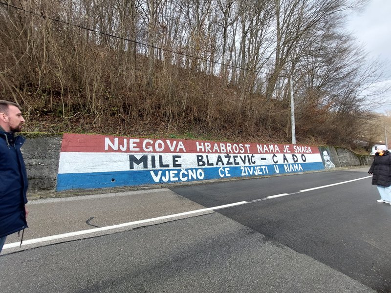 Zatim su se uputili na brdo Čukur kod Hrvatske Kostajnice, gdje se nalazi spomen-obilježje Gordanu Ledereru. Ovaj impresivan spomenik u obliku ogromnog fotografskog objektiva simbolizira smrt talentiranog snimatelja HRT-a,koji je stradao “naoružan” samo kamerom. Unutar leće vidljivi su tragovi snajperskog metka koji ju je napuknuo i slomio.