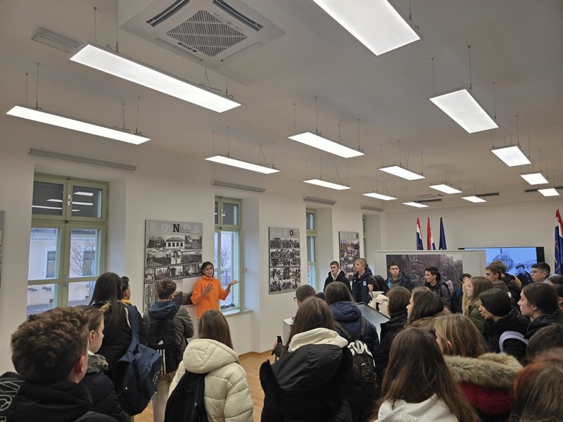 Terenska nastava završila je u Sisku gdje su učenici obišli Memorijalnu sobu Domovinskog rata u Kulturno-povijesnom centru Sisak i poslušali predavanje o ratnim događajima.